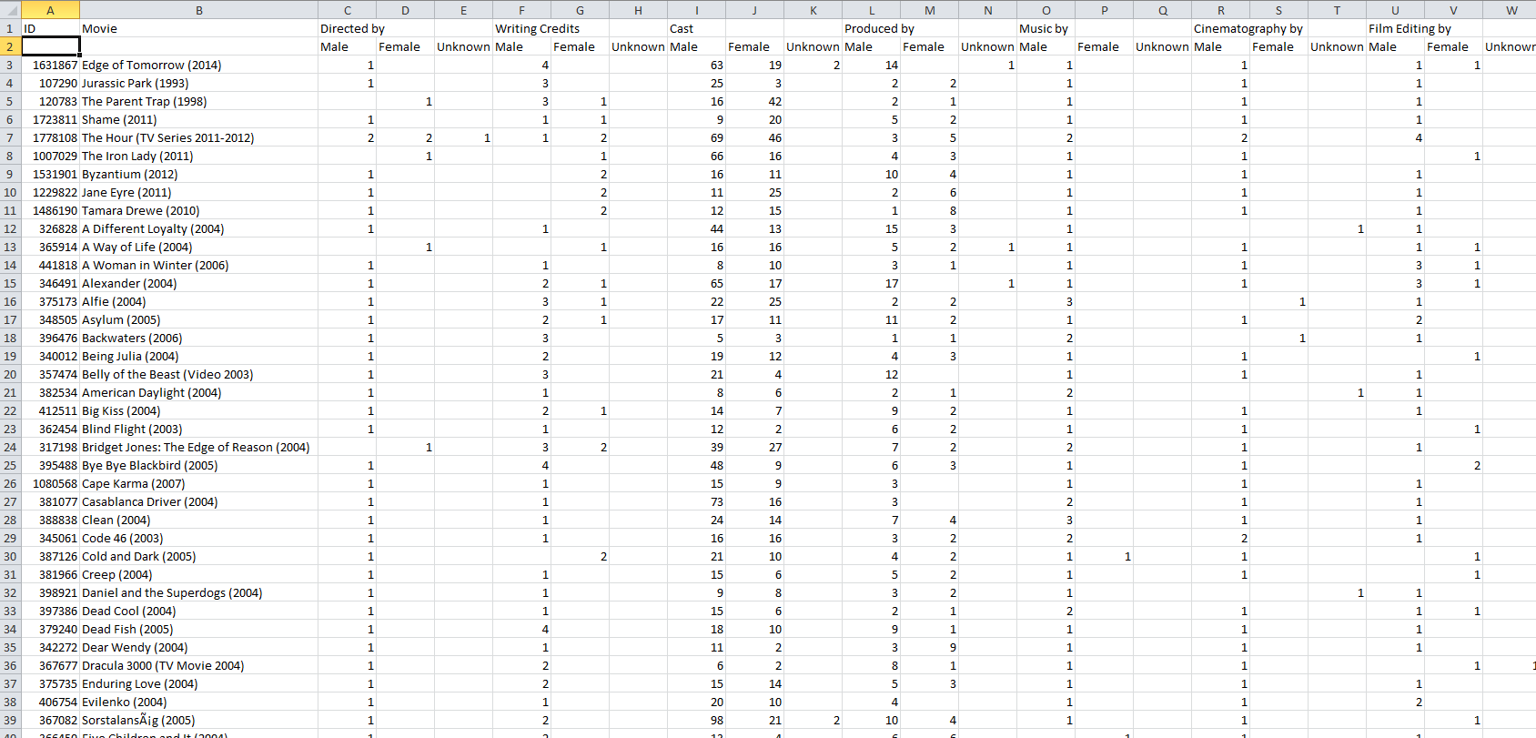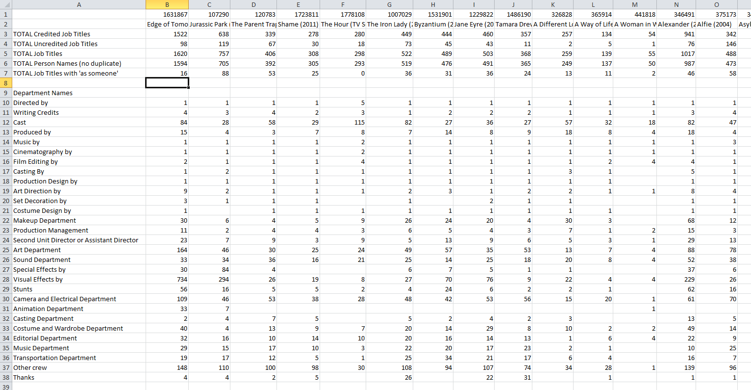 Typical CSV result from scrapping IMDB