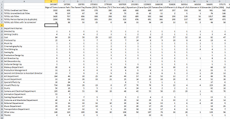 CSV result of movie name vs department name